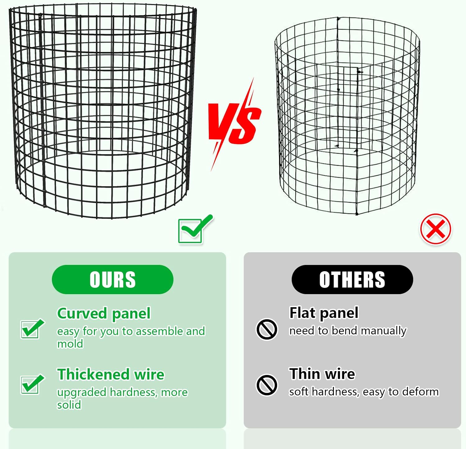 - Strong plasticity: Our plant cage has a total of 30 pcs mesh , which have very strong plasticity and can be straightened or bent. You can stitch it into a square or rectangular plant cage, or stitch it to a higher and wider plant cage. To protect more plants. (If you need to assemble it as a rectangle, You need to straighten the mesh by yourself)