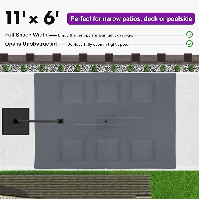 - Tilt Design: The easy-tilt system allows you to adjust the canopy angle up to 55° to the left or right, keep the shade as the sun moves throughout the day