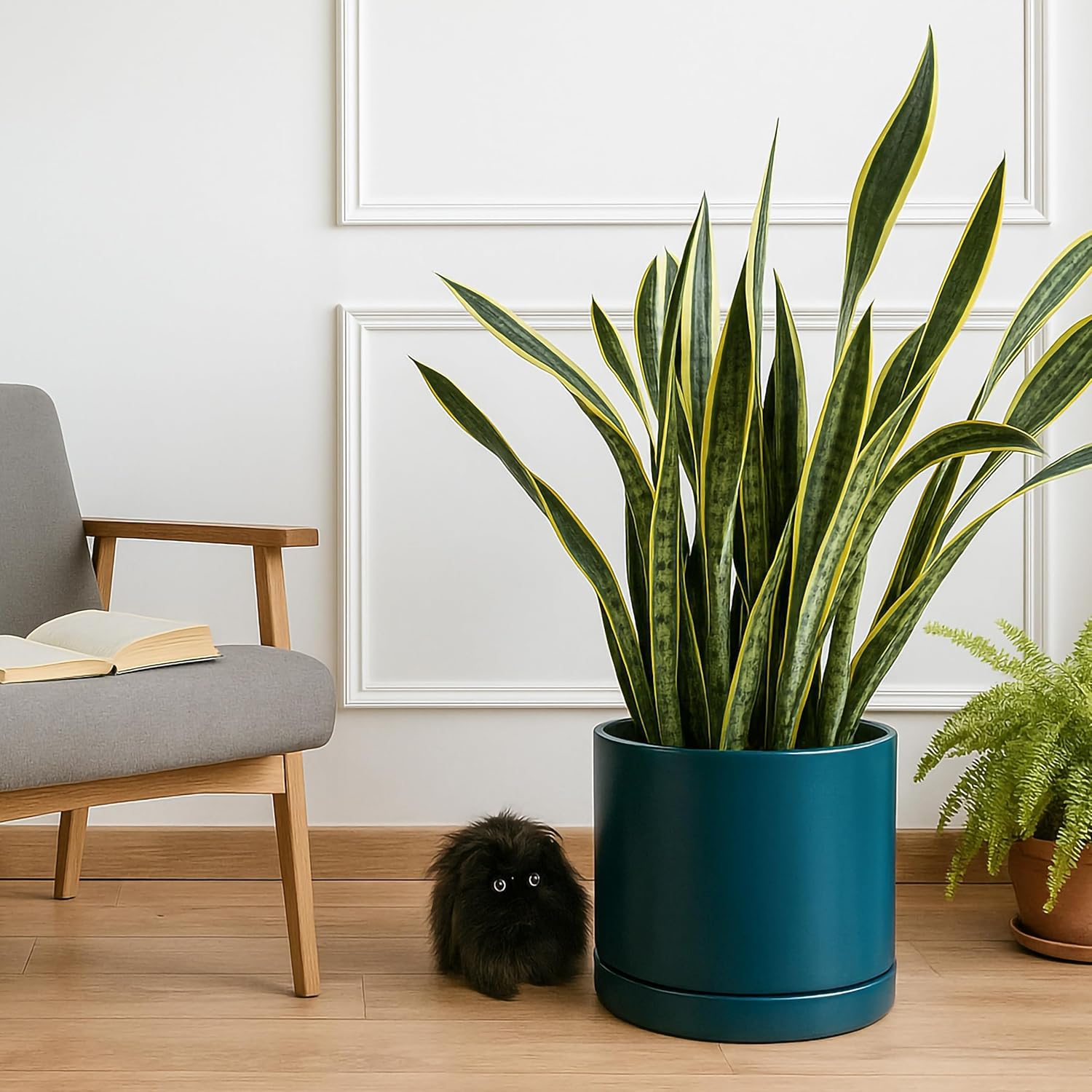 - Simple, elegant, and modern cylindrical straight round planter pot with saucer and drainage hole.