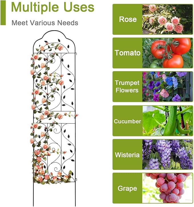- 【Space-Saving Gardening Solution】Optimize small yards or urban spaces by training plants upward. Ideal for gardens, vegetable patches, and trellised flower walls, this trellis saves ground space while showcasing climbing roses, clematis, peas, and more. Durable yet lightweight enough to move as your landscape evolves.