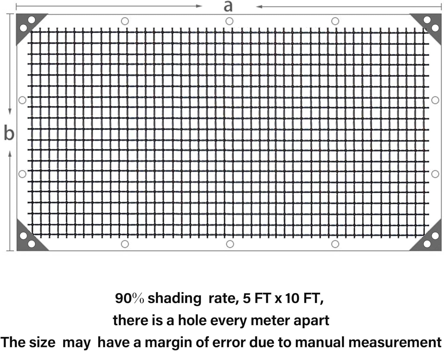 winemana Black Shade Cloth 90%, 5x10 FT Mesh Tarp - Garden Shade for Greenhouse, Patio, Vegetables, Plants Cover and Chicken Coops, Sun Shade Net for Outdoor Protection with Reinforced Grommets