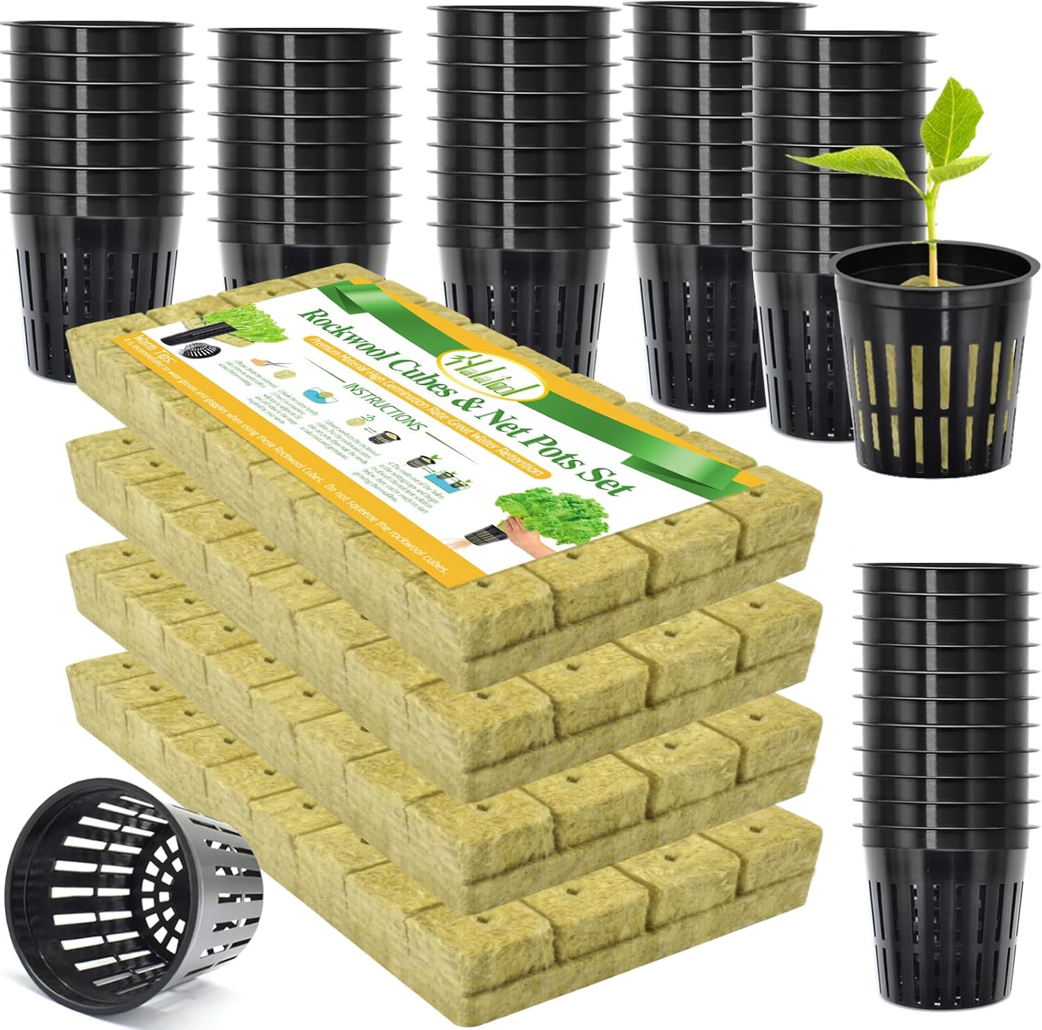 - Value Package Includes: You will get 144 1.2-inch rock wool cubes and 120 2-inch net cups. This is a pretty good starter kit for someone wanting to get started in aquaponics or hydroponics.The rock wool helps hold in moisture, and the pots give it stability and transportability. This will help yields and sprouting time.