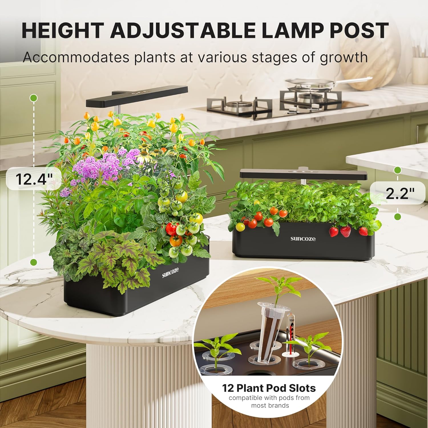SUNCOZE Hydroponics Growing System Kit 12 Pods, 24W LED Grow Light Indoor Garden, 4L Water Tank with Quiet Pump, Adjustable Height Herb Garden Planter Indoor Kit, Gardening Gifts, Black