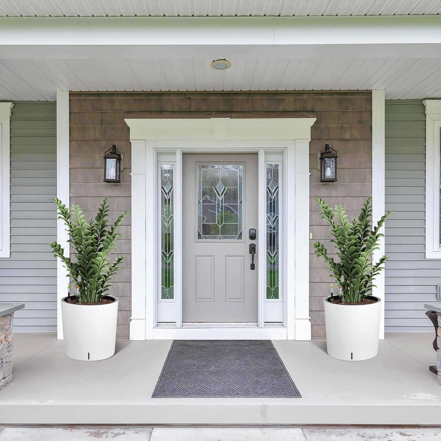 Tall Round Planter Set of 2, 19.5‘’ H x 19.9" Dia Large Planters for Indoor Plants with Built-in Drainage and a Water Level Monitor and Wheels for Patio, Porch, Living Room, or Home Office, White