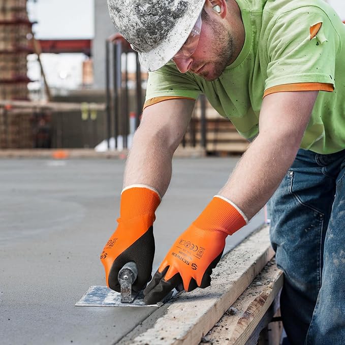 - 【Multi-Purpose for Various Tasks】High-viz orange coloring lets you be seen and be safe. These work gloves are perfect for a variety of indoor and outdoor work such as grouting or wet saw, working with the water troughs, driving, gardening, cleaning, fishing, painting, outdoor chores, etc.