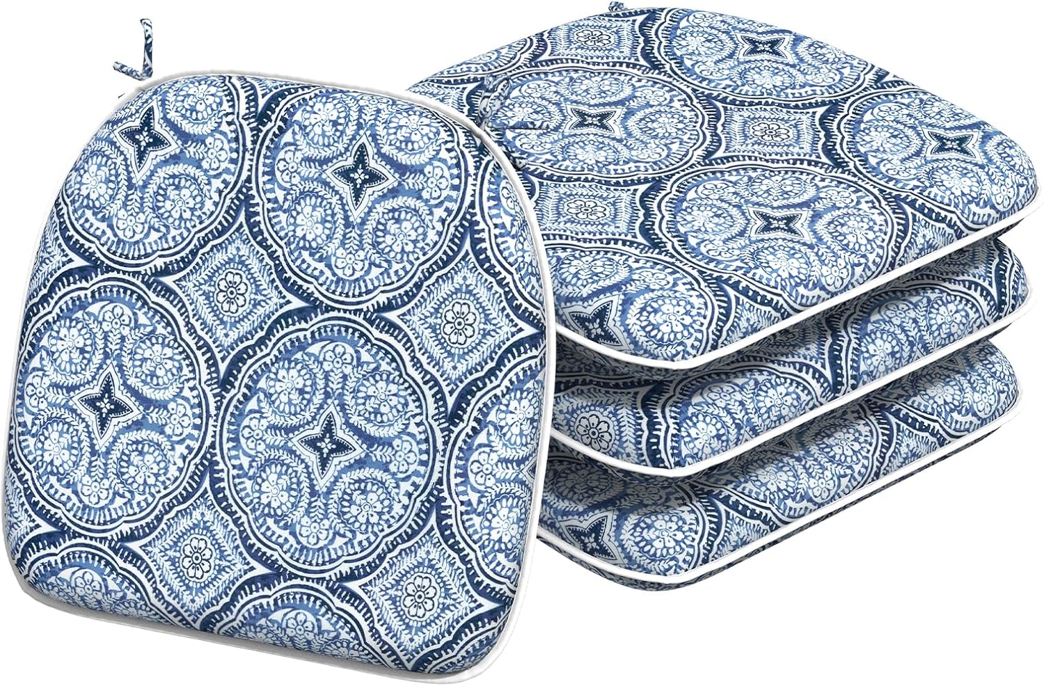 Indoor/Outdoor Chair Cushions 16x17 Inch, Patio Chair Cushions with Ties, All Weather Seat Cushions for Patio Furniture Home Garden Chair Use, Set of 4,Medallion Blue