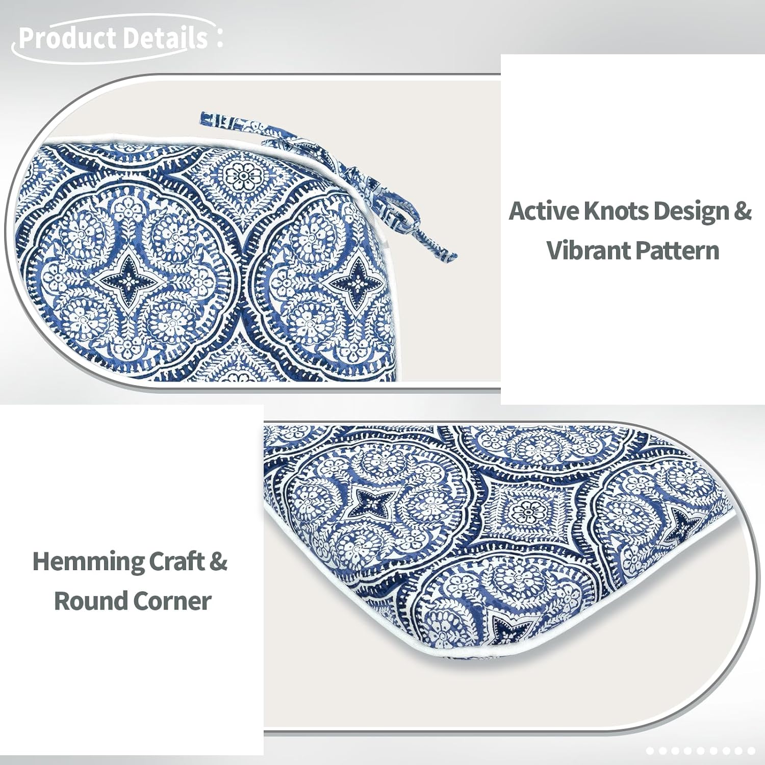 - Multiple Applications: Whether you're lounging or enjoying on your patio/balcony/garden/dining room, vibrant patterns can be adapted to your indoor and outdoor decor to add a vivid atmosphere. Attached ties keep the outdoor cushions securely in place, preventing unwanted sliding or movement while you sit.