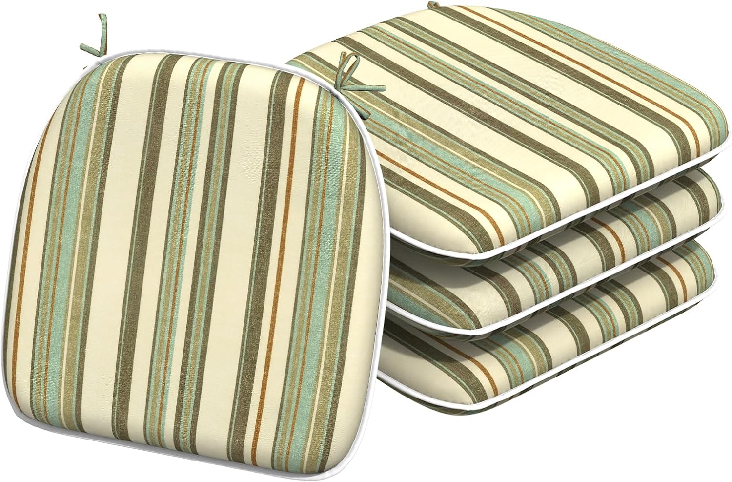 Indoor/Outdoor Chair Cushions 16x17 Inch, Patio Chair Cushions with Ties, All Weather Seat Cushions for Patio Furniture Home Garden Chair Use, Set of 4,Stripe Onyx