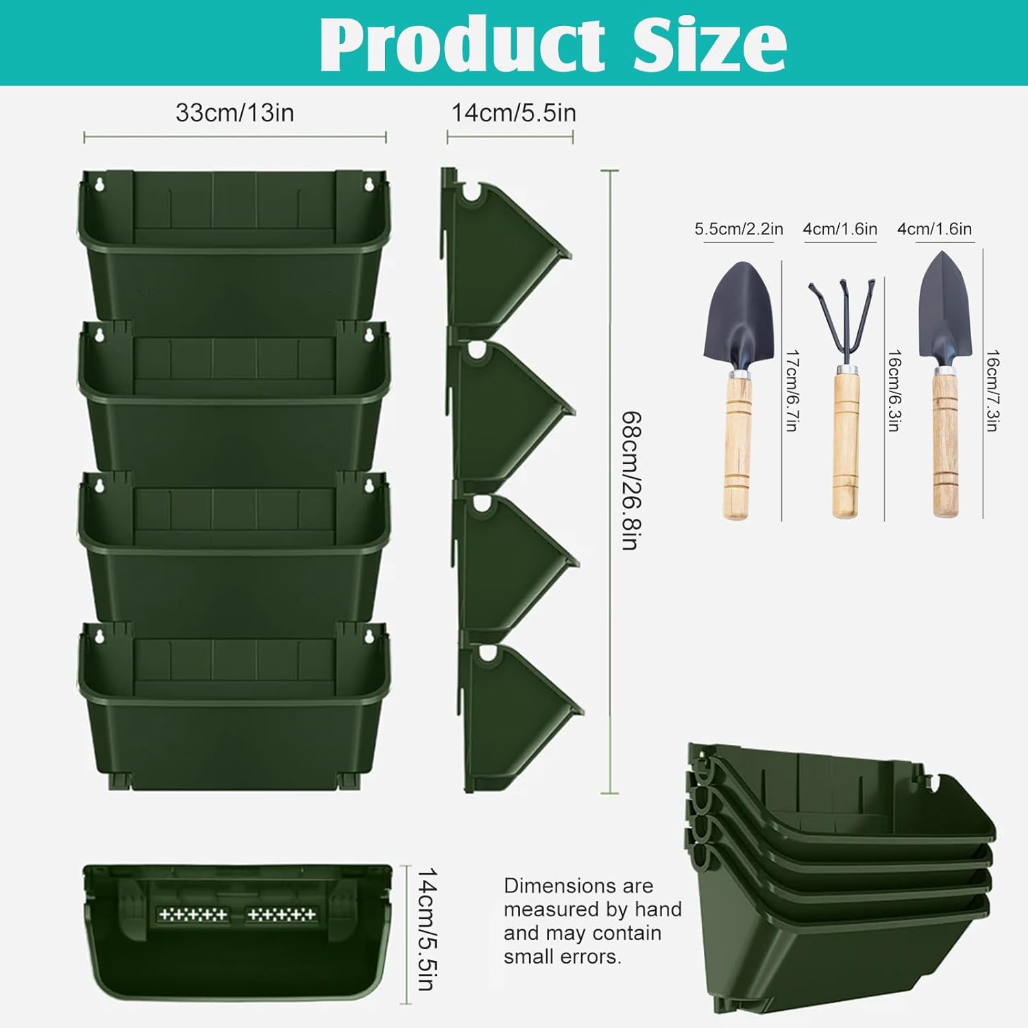 Vertical Wall Planter, 4 Packs Self Watering Wall Planters for Indoor with 3 Pcs Garden Tool Set Vertical Planter Tower for Strawberries Flowers Herbs, 12.9''x5.5'' x26.7''