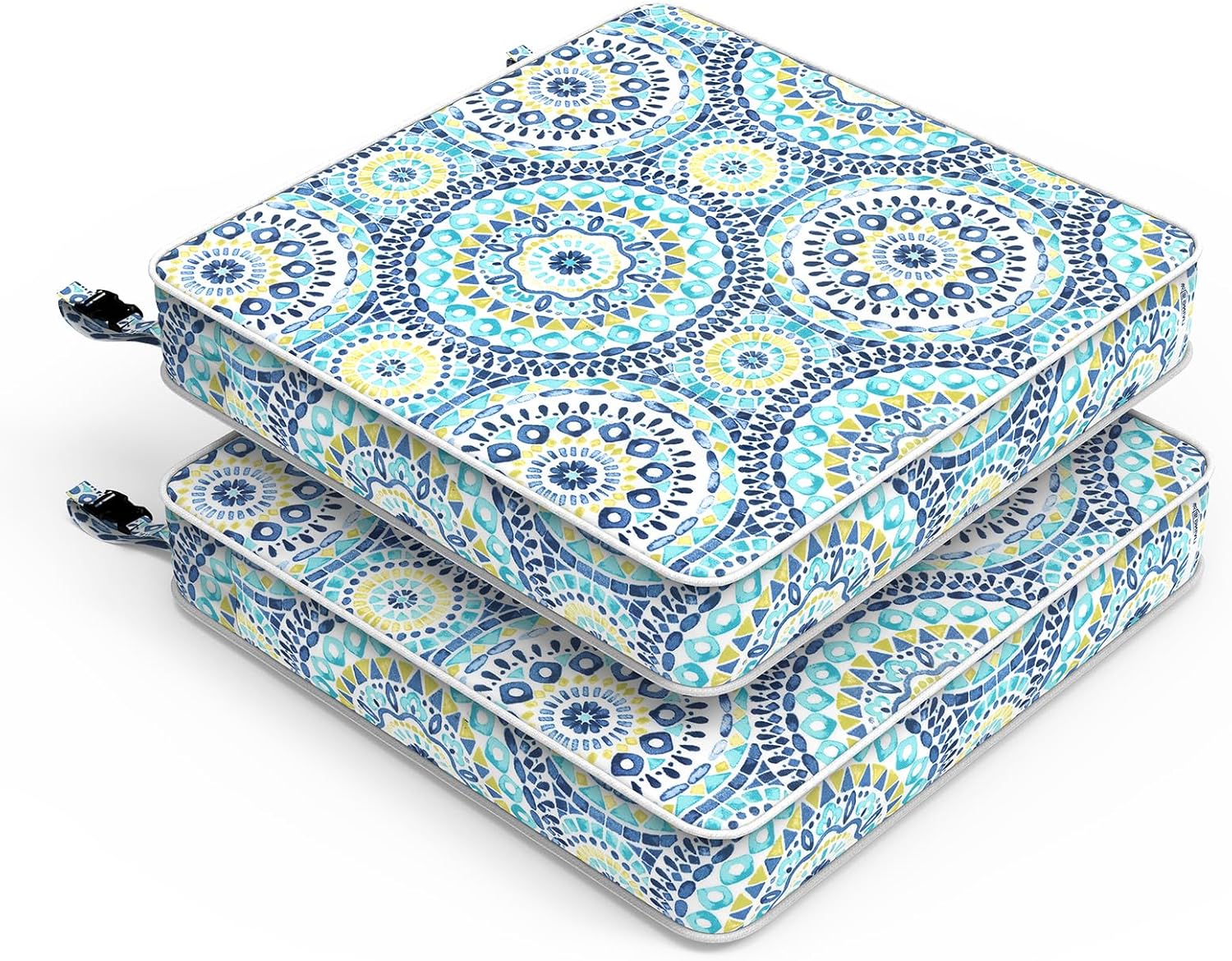 LVTXIII Patio Chair Cushions 22"x22"x3", Water-Repellent Outdoor Seat Cushions for Patio Furniture, Square Chair Pads with Ties for Home Garden Decoration, Set of 2, Delancey Lagoon