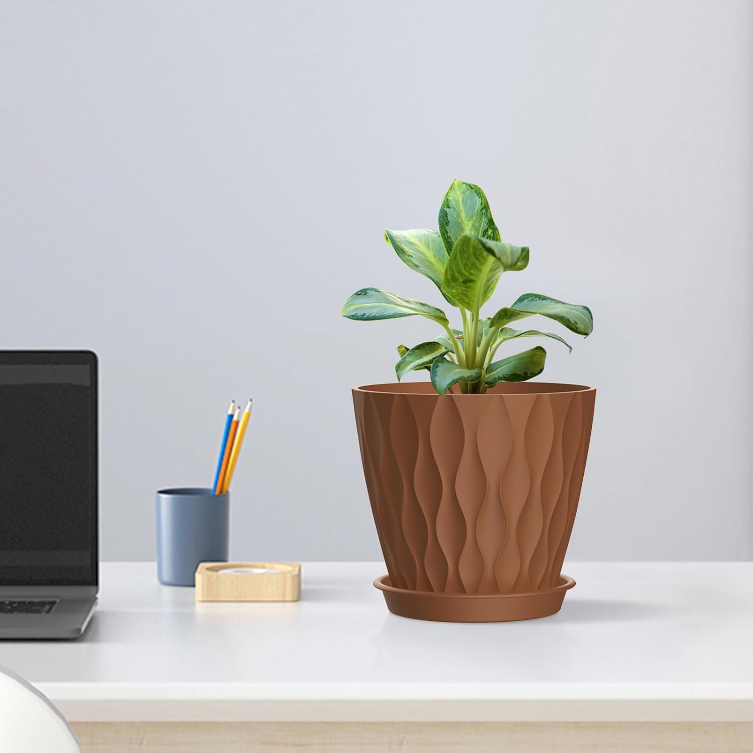 - 【Stylish 3D Wave Design】These water ripples plant pots set of 5 feature a modern 3D wave design, adding a touch of elegance to any space. Whether for starting seedlings, transplanting, or decorative your home and office, these plastic planter pots set are a good choice for any gardening enthusiast