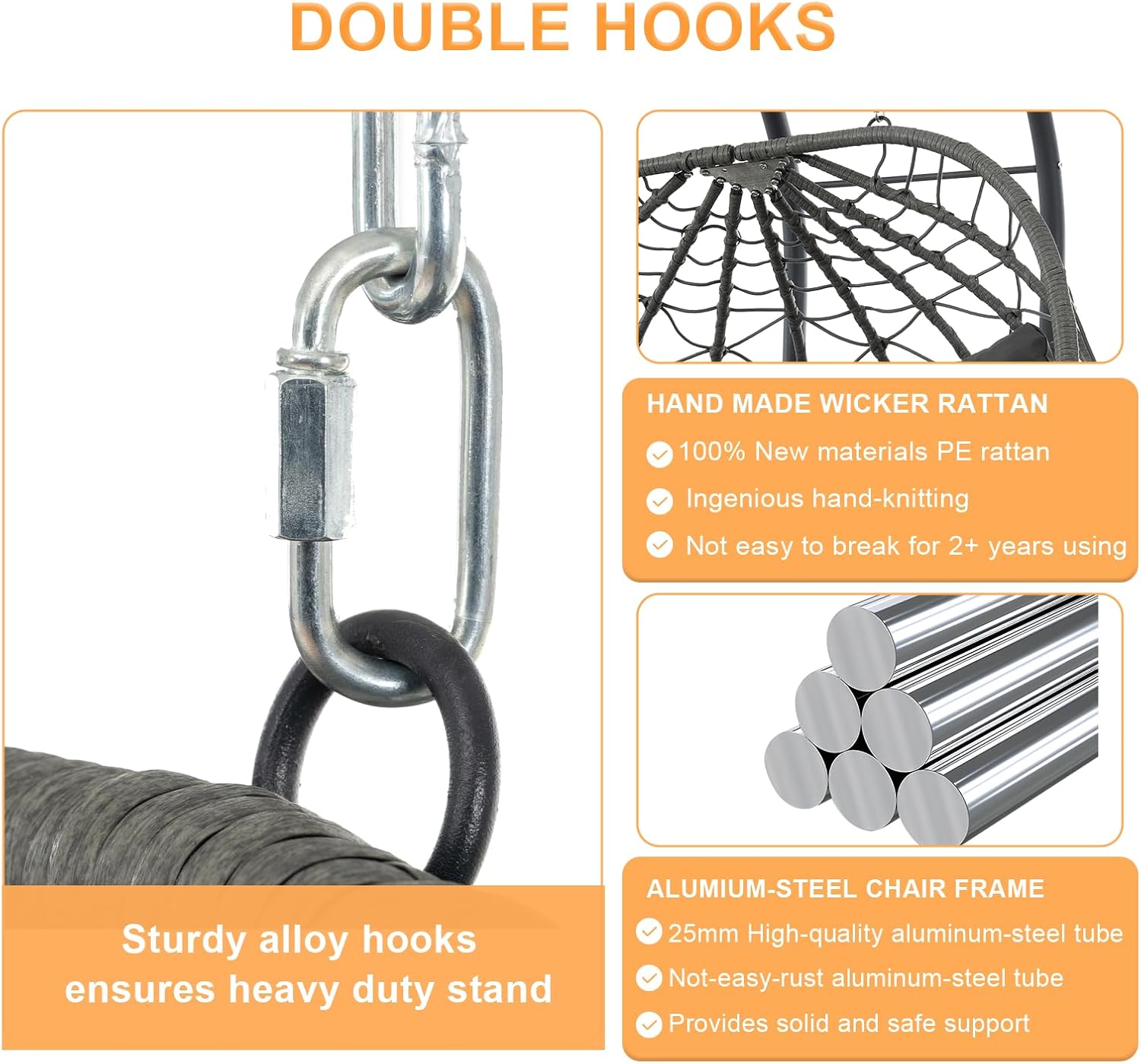- [Sturdy and Durable]: Hanging egg chair with stand's aluminum-steel frame and a sturdy heavy-duty steel stand ensures extend lifetime, and the sturdy stand provides stable support, the chain can hold up to 700 lbs, you can enjoy it for ears.