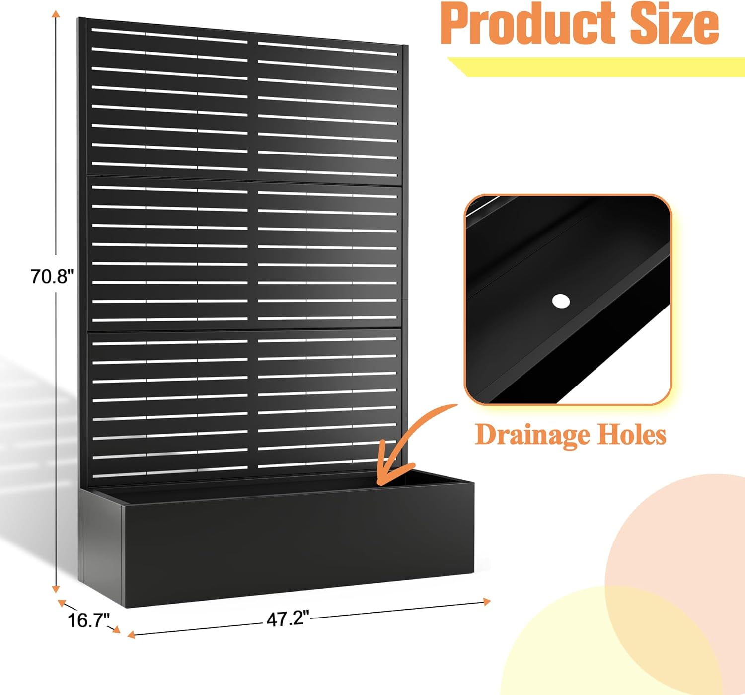 - Built-In Drainage System: The planter box features a 12-inch deep planting bed with drainage holes to prevent waterlogging, ensuring your plants receive the optimal moisture levels for healthy growth.