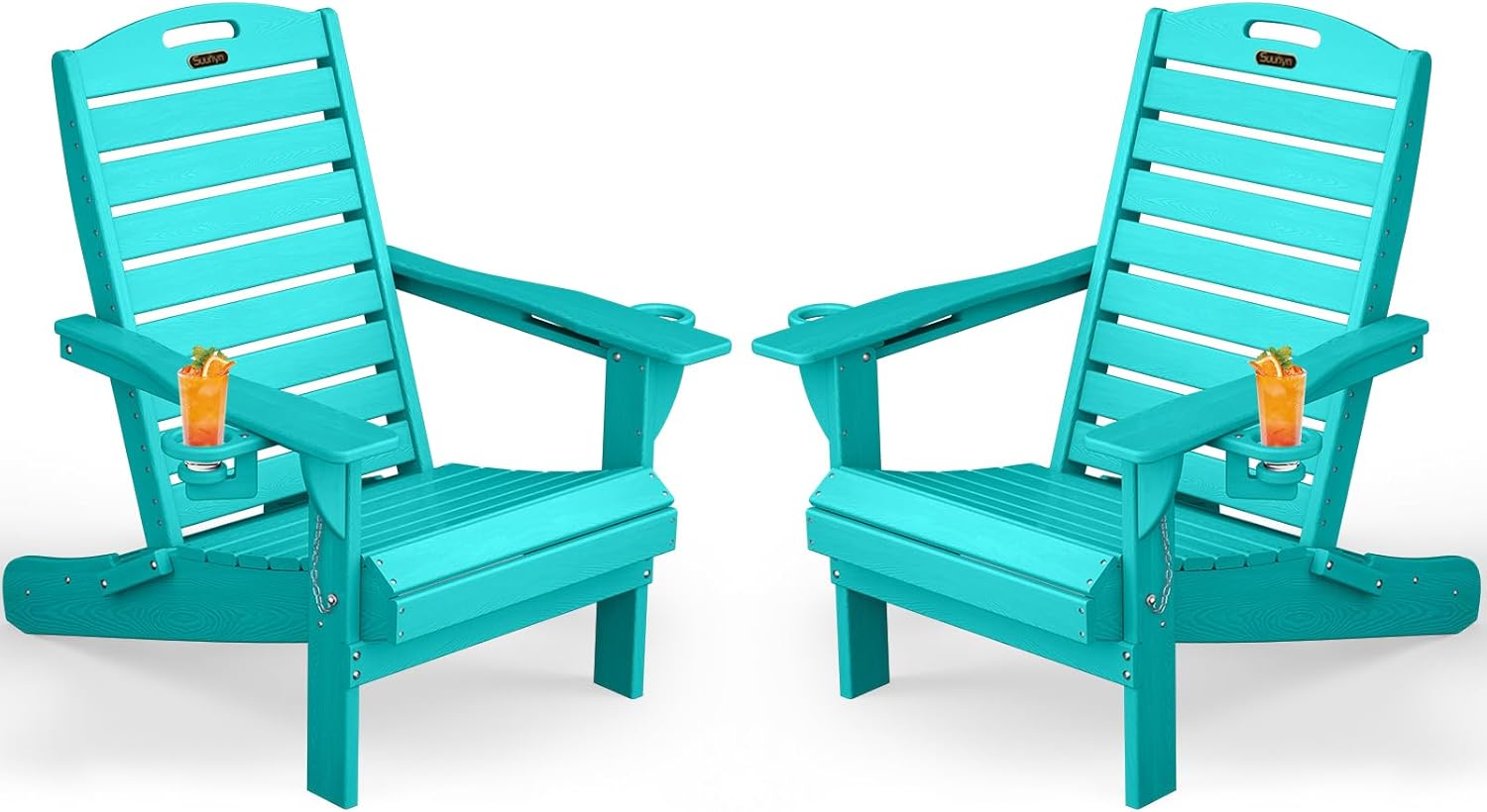 Adirondack Chairs Set of 2, Outdoor Fire Pit Chairs, HDPE All-Weather Adirondack Chairs with Cup Holder, Lawn Chair for Deck, Patio, Garden (Lakeblue)