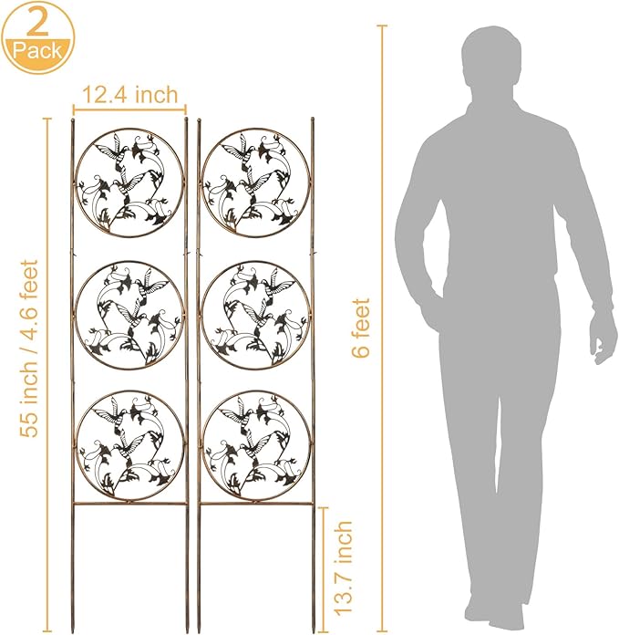 SUNNYPARK Set of 2 Hummingbird Metal Garden Trellis for Climbing Plants, Decorative Vegetables Flowers Vine Trellis for Outdoor Patio 55'' H x 12.4'' W