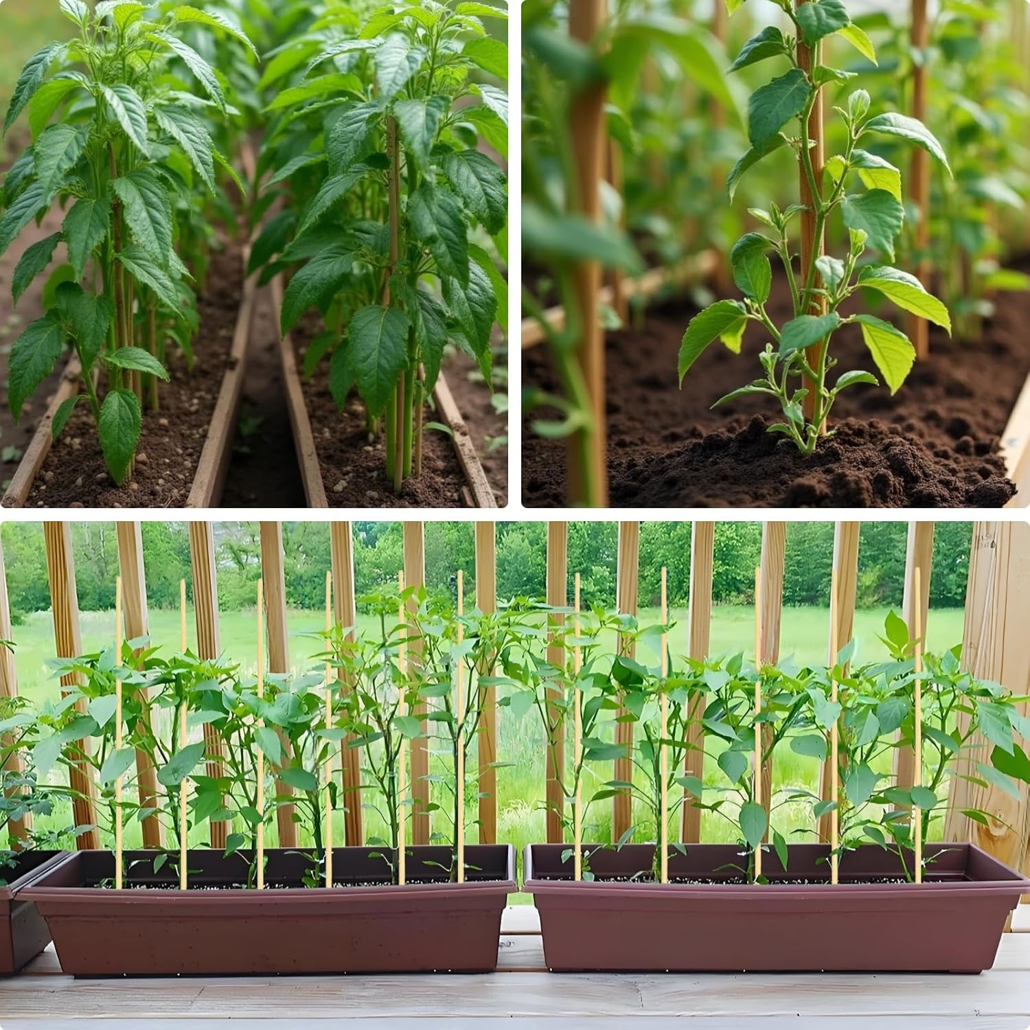 - [Ideal Plant Support Stakes – Indoor & Outdoor Use] -- These bamboo garden stakes provide strong, upright support for tomatoes, peppers, beans, climbing plants, and potted plants. They help prevent drooping or breakage and can be trimmed to fit different plant sizes or pot heights—perfect for any garden setup