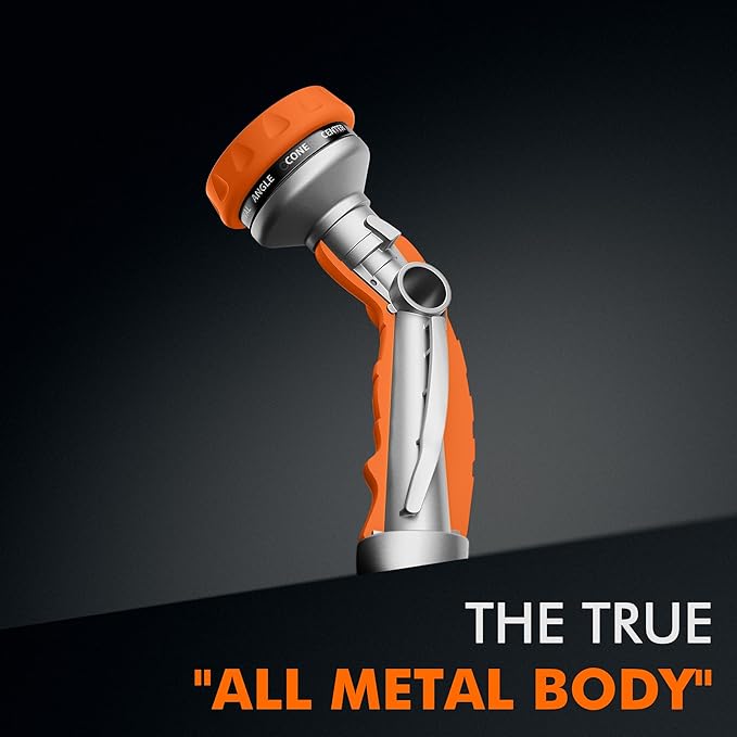 - 【Heavy Duty Metal Hose Nozzle】Constructed with premium zinc-alloy material, this hose nozzle sprayer is solid & strong to resist daily drops and shocks. The bronze powder painting, TPU coating and rubberized bezel dial can enhance durability & flexibility and withstand hard impacts & heavy force. A long-lasting garden hose nozzle you can count on many years.