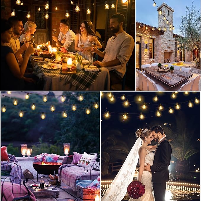 - Durable & Dimmable string lights: 48FT 18 sockets plug in G40 globe solar light contains 15 durable clear bulbs (1 spare)