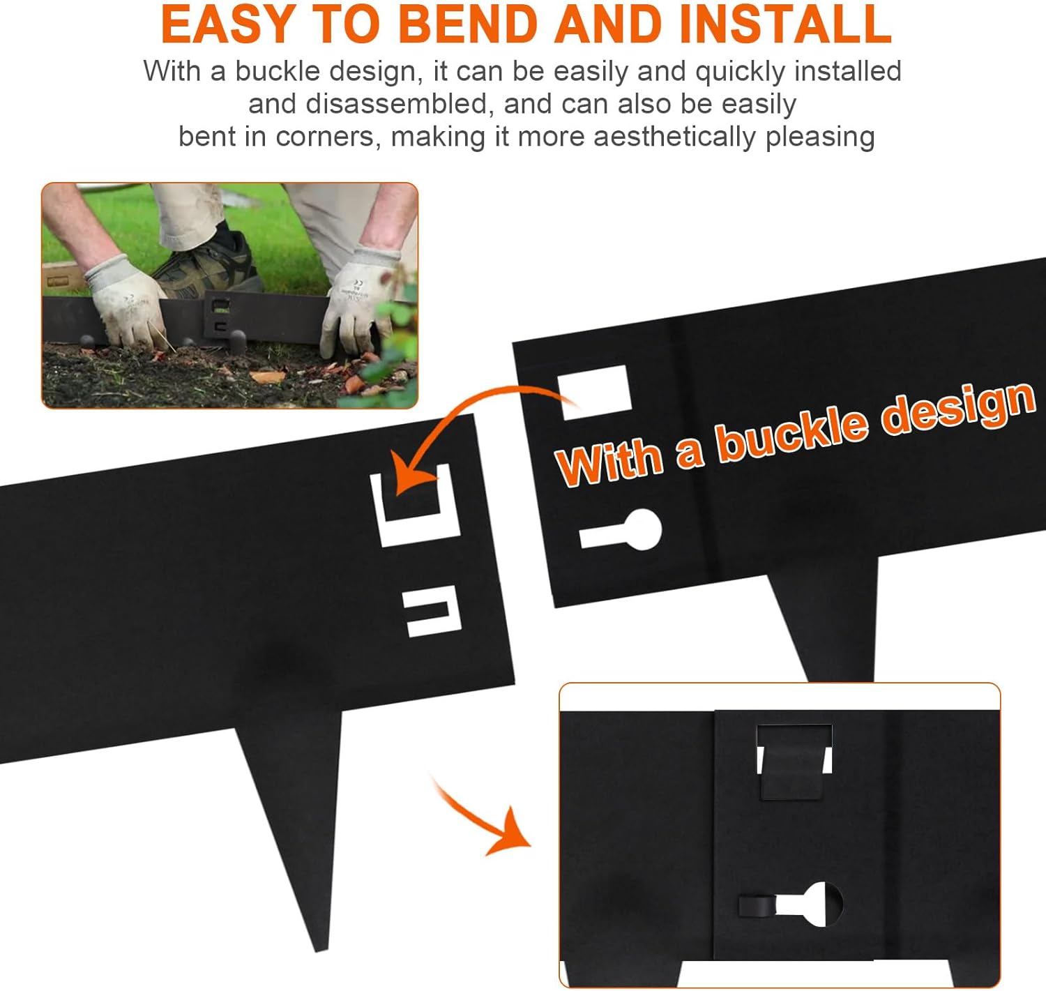 - EASY TO INSTALL - The 42-inch long, 9.4-inch wide steel garden landscape edging is easy to bend and can be easily set to create clear borders that define different areas of your landscape. The steel buckle design allows for quick and easy installation and removal, ensuring a tight connection between sections to avoid loosening. It is easy to install and saves time and effort, providing a hassle-free solution for improving your outdoor environment