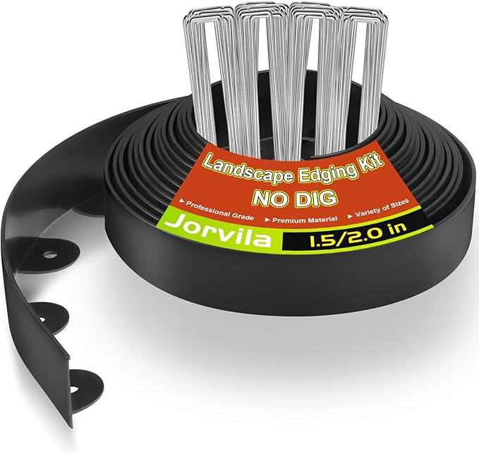 - Easy Installation: Jorvila garden edging can be installed without the help of professional tools and digging; Just need to stake garden border in the shape you want with metal spikes every 2-3 holes