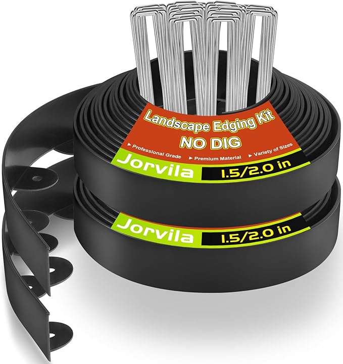 - Easy Installation: Jorvila garden edging can be installed without the help of professional tools and digging; Just need to stake garden border in the shape you want with metal spikes every 2-3 holes