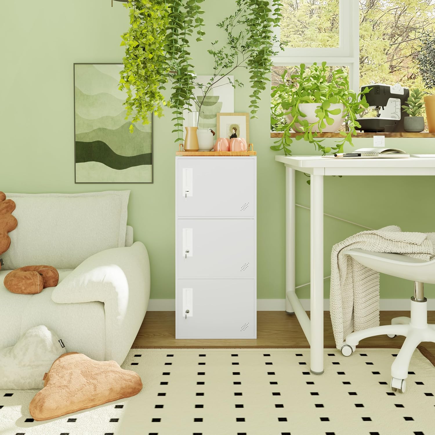 3 Door Metal Vertical Storage Locker for School, Office, Home,Gym,Stackable Steel Storage Cabinet with Lock,Anti-Falling Device. (3 Door, White)