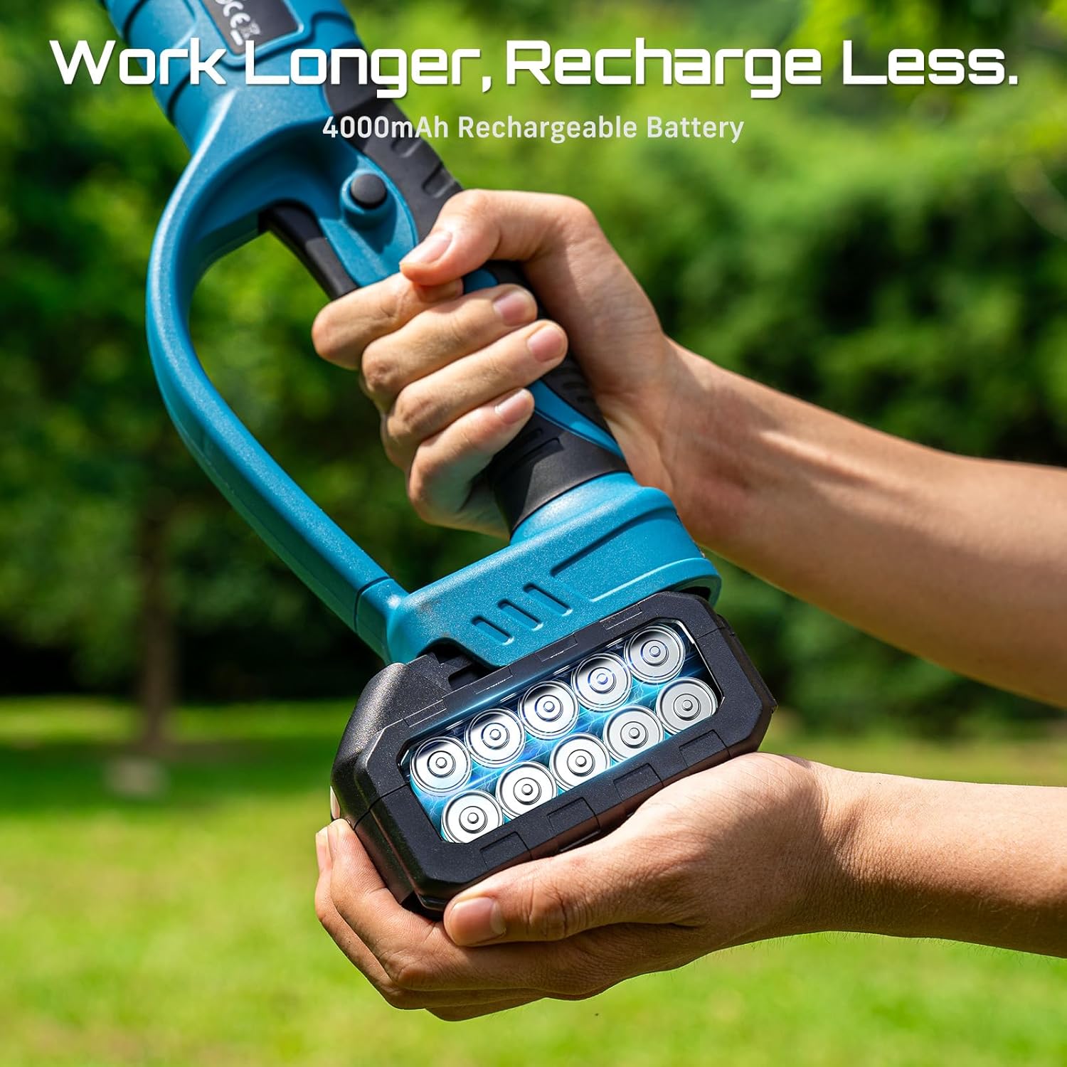 - 【Lightweight & Ergonomic for Comfort】At just 2.85 lbs (6.2 lbs with pole), these cordless pruning shears are built for comfort. The non-slip rubber grip reduces hand strain, and the shoulder strap eases back discomfort, ensuring you can prune longer and comfortably
