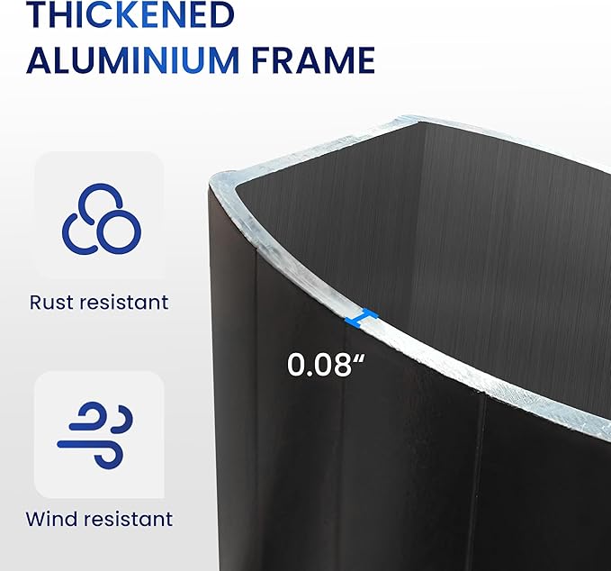 - Thickened Aluminum Frame: Aluminum main pole is rust resistant, enhancing the stability of your patio umbrella; 8 thickened ribs make the cantilever umbrella more stable in windy conditions; Powder coated design increases the durability of the umbrella