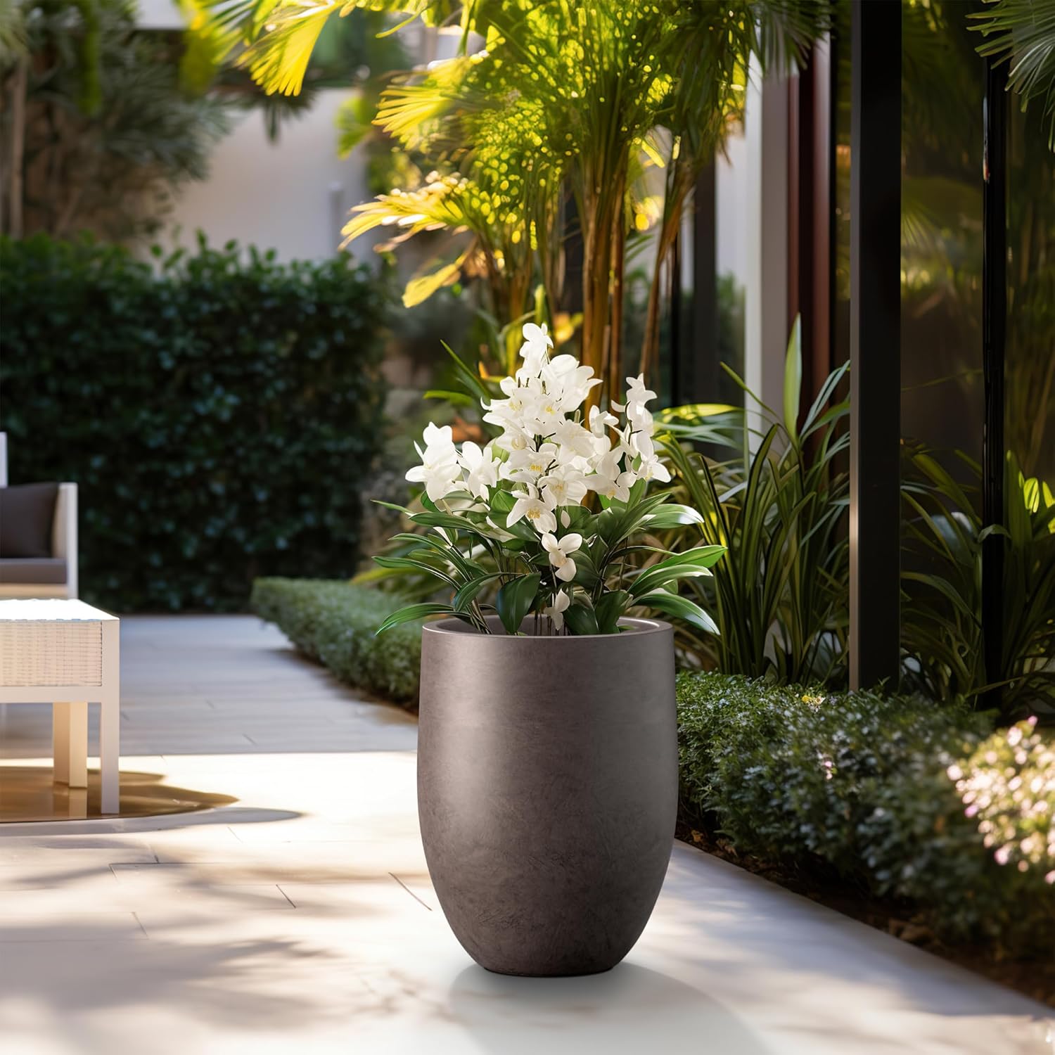 Kante Tall Concrete Planter, 21.7-Inch Height Weathered Brown Large Indoor Outdoor Plant Pot with Drainage Hole for Patio Garden Home, Modern Decor for Flowers and Tree