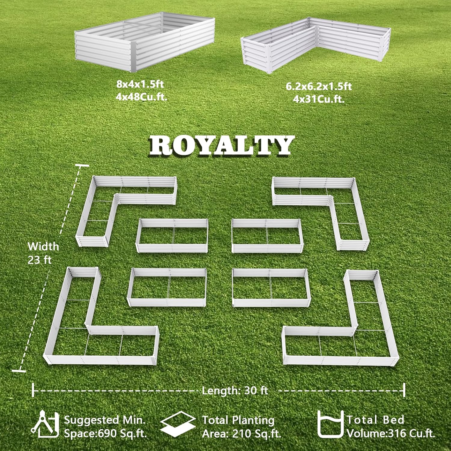A ANLEOLIFE 8-Pack 8X4X1.5ft & 74x74x18 in Deep Root Galvanized Raised Garden Beds Outdoor for Planting Vegetables Flowers Herb, Antique White
