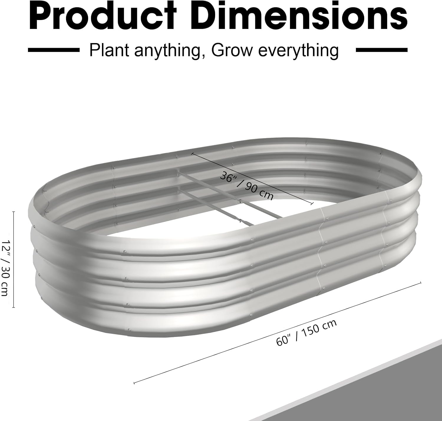 5x3x1ft Oval Galvanized Raised Garden Bed Outdoor 9-in-1 Large Metal Modular Planter Box Raised Beds for Gardening,Vegetables,Fruits,Flowers & Herbs (Silver)