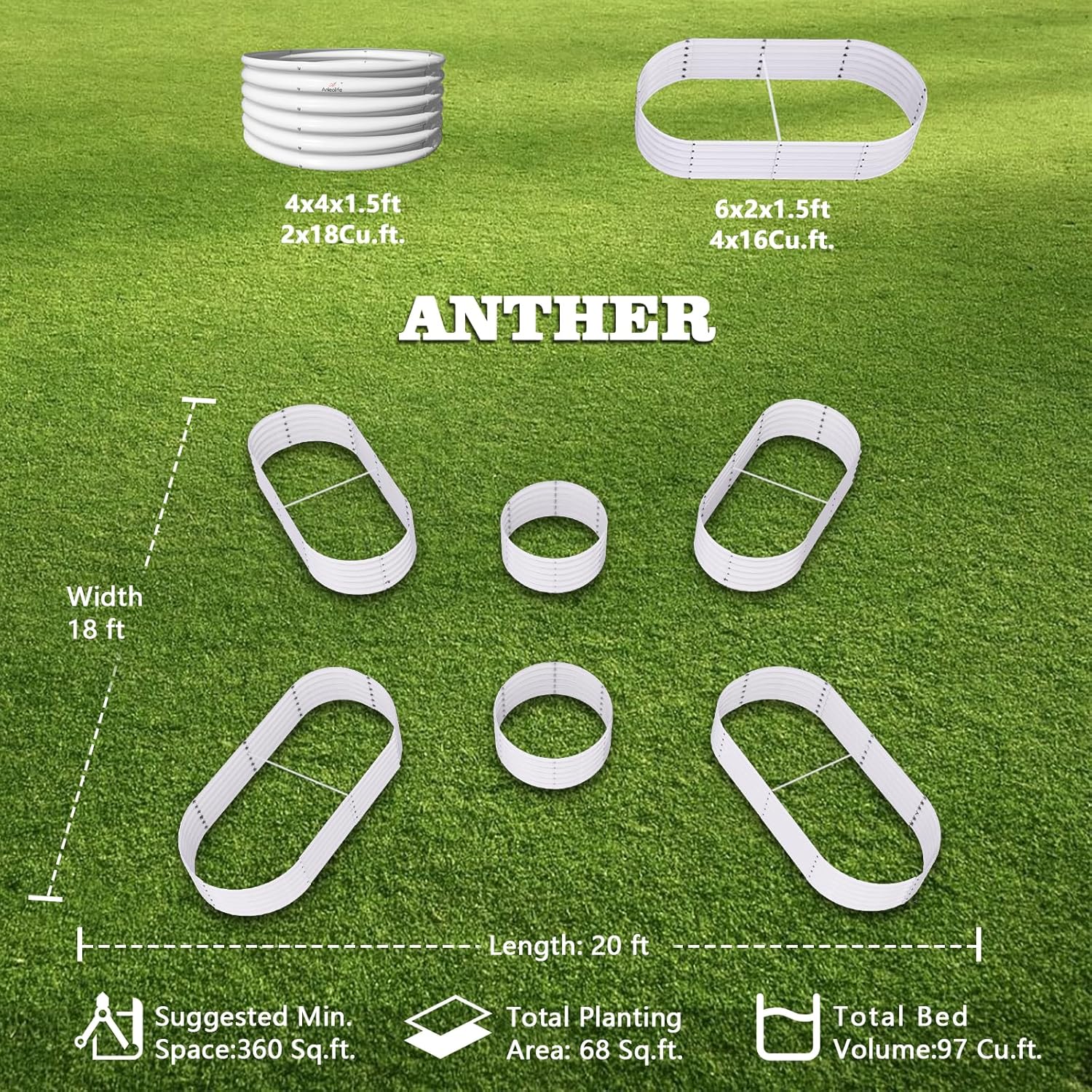 A ANLEOLIFE 6-Pack 4X4X1.5ft & 6X2X1.5ft Deep Root Galvanized Raised Garden Beds Outdoor for Planting Vegetables Flowers Herb, Antique White