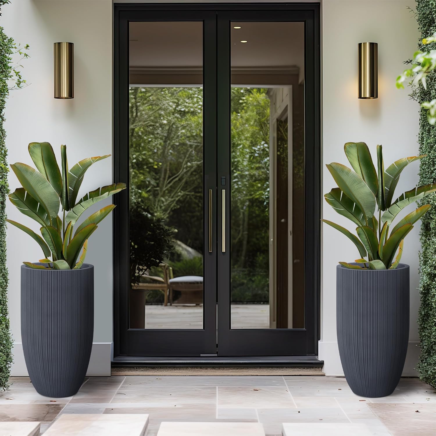 Kante 24 Inch Tall Round Concrete Planter, Large Indoor Outdoor Plant Pots with Drainage Hole and Rubber Plug, Modern Decorative Garden Pots for Home Patio Porch, Textured Charcoal