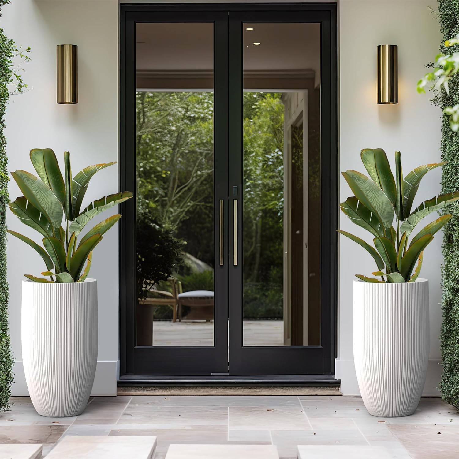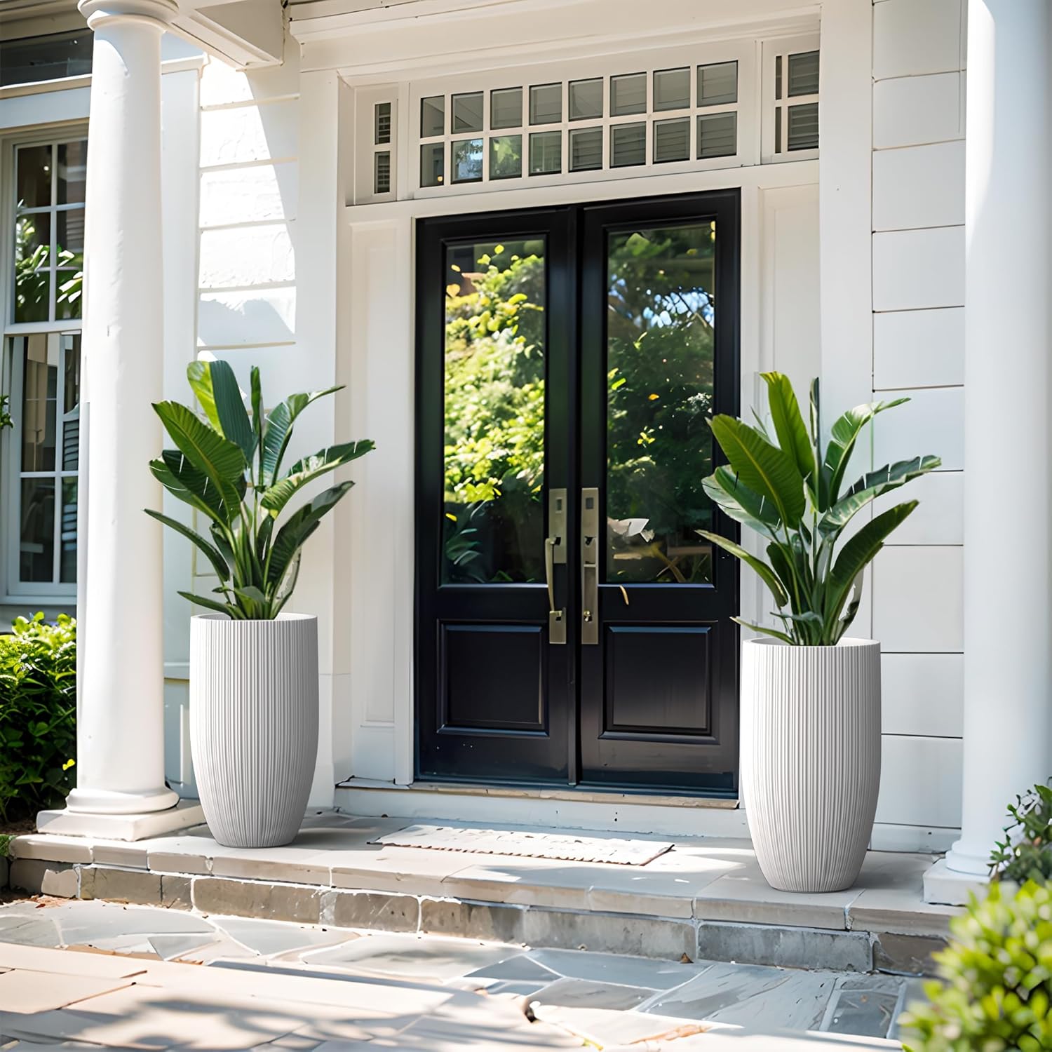 Kante 24 Inch Tall Round Concrete Planter, Large Indoor Outdoor Plant Pots with Drainage Hole and Rubber Plug, Modern Decorative Garden Pots for Home Patio Porch, Textured White