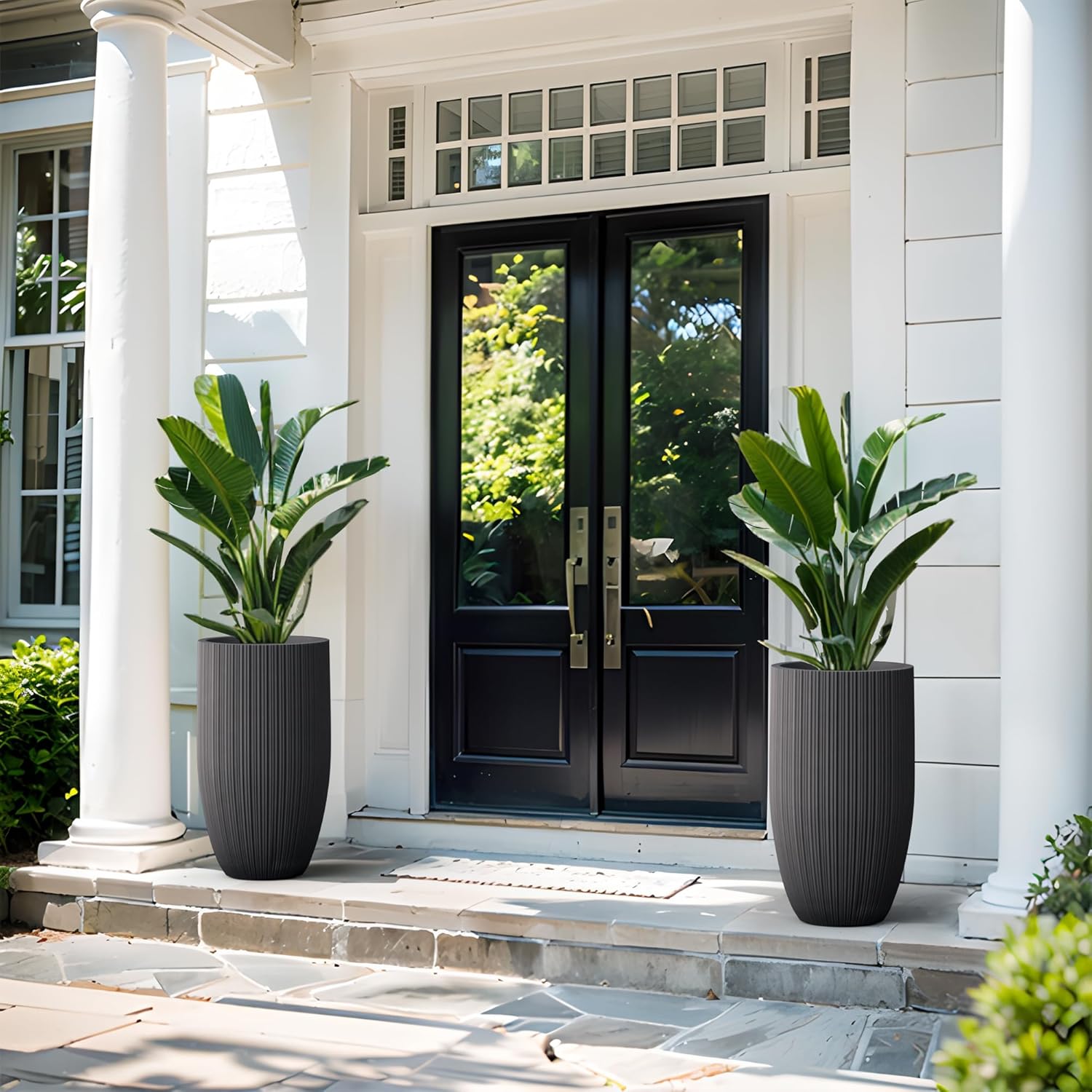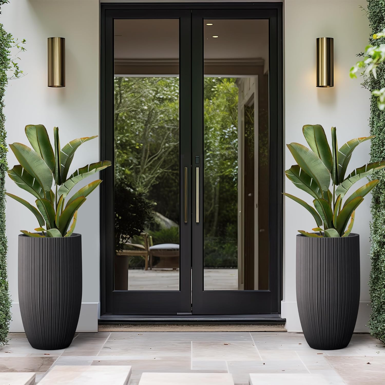 Kante 24 Inch Tall Round Concrete Planter, Large Indoor Outdoor Plant Pots with Drainage Hole and Rubber Plug, Modern Decorative Garden Pots for Home Patio Porch, Textured Black