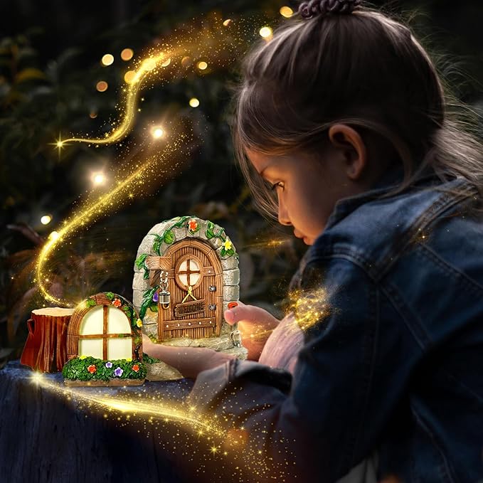 - WHAT YOU GET: Including a fairy door, illuminated by two dark Windows, two small lanterns, and a lamp. Create a small tree house for your friends with our Fairy door kit. This outdoor fairy house is just the right size to bring your garden to life