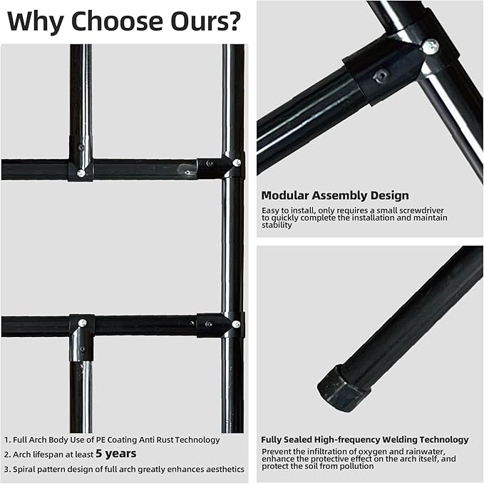 - Superior Durability & Rust-Resistant Design: Crafted from 25mm thick galvanized steel pipes with a 0.35mm plastic coating, this arch is designed for long-lasting use. The premium materials resist rust, protect plants from damage, and ensure reliable performance in diverse weather conditions.
