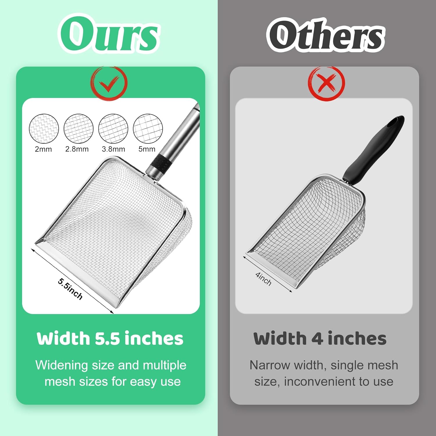 - Convenient size:Garden soil sifter is 11.4 inches in overall length and the handle is 5.5 inches long for easy holding. The mesh screen is 5.5 inches wide, which is wider than other sifting shovels and is perfect for sifting sand, dirt and compost.