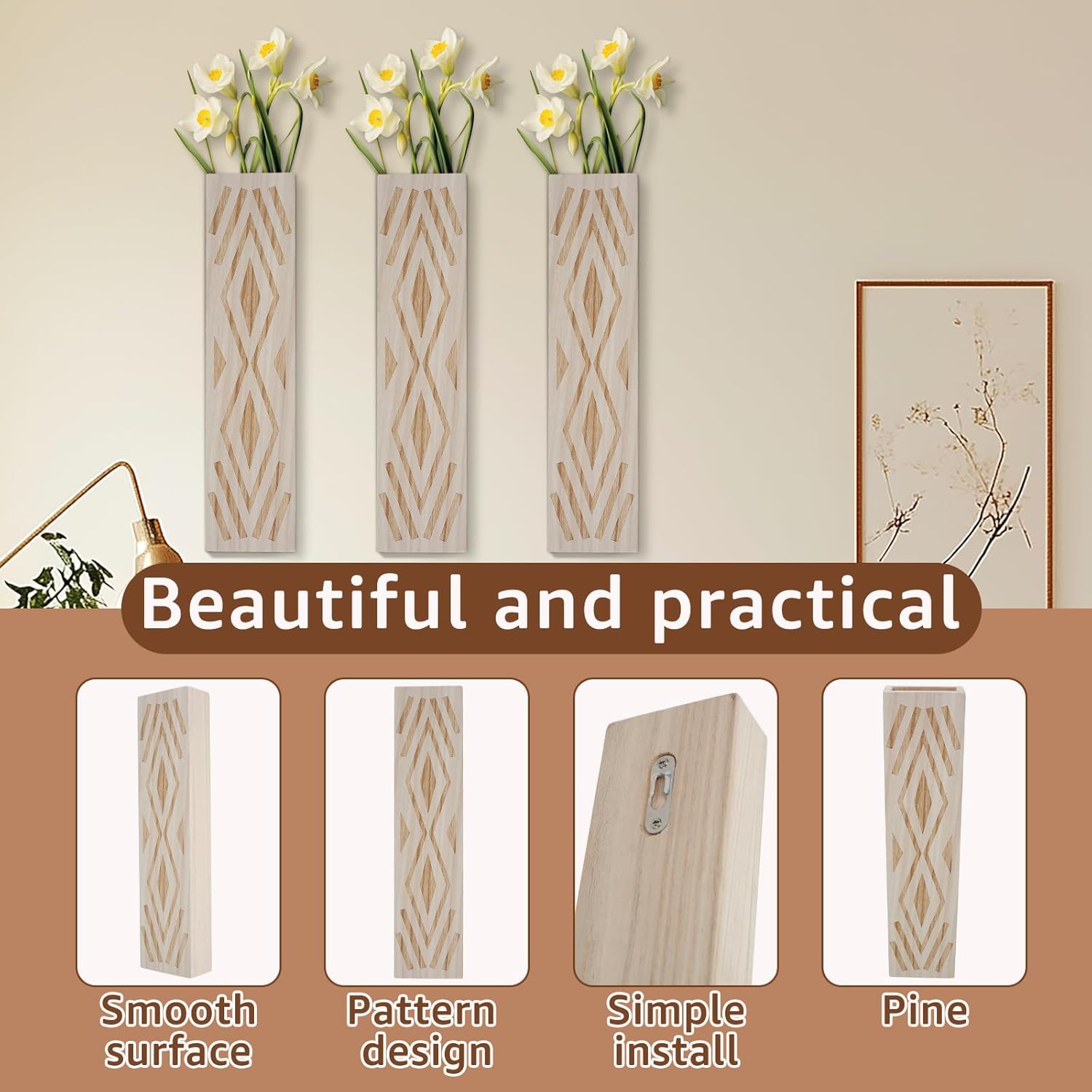 - Suitable Size: This set includes 3 wood hanging vases, each wood hanging vase measures 30 x 7 x 4 cm / 11.8 x 2.8 x 1.57 inches, which is enough for wall decoration