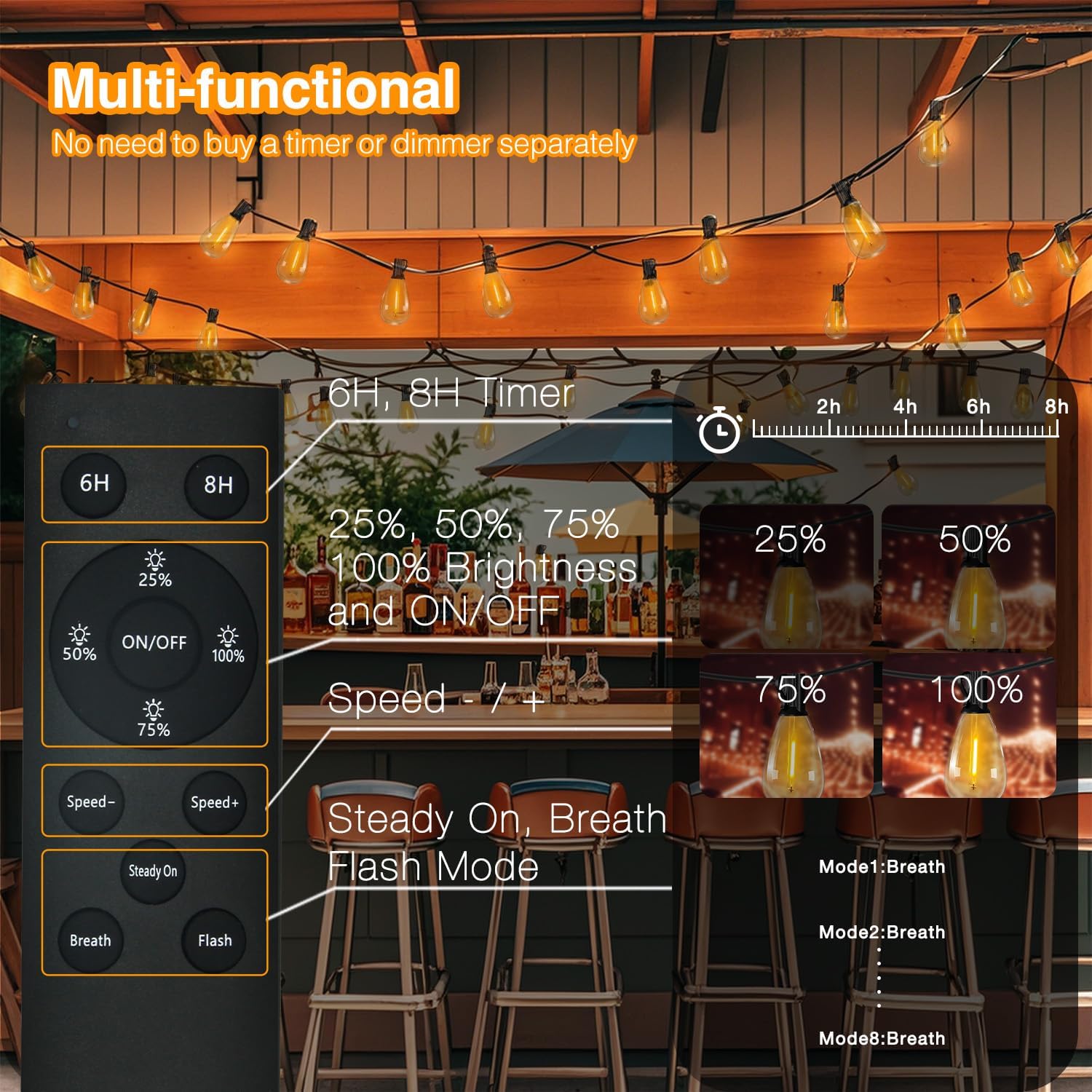 - DAYBETTER Outdoor Solar String Lights 50FT with 3W solar panel Shatterproof and Waterproof. solar string lights come with several lighting modes, including steady on, flashing, or fading.
