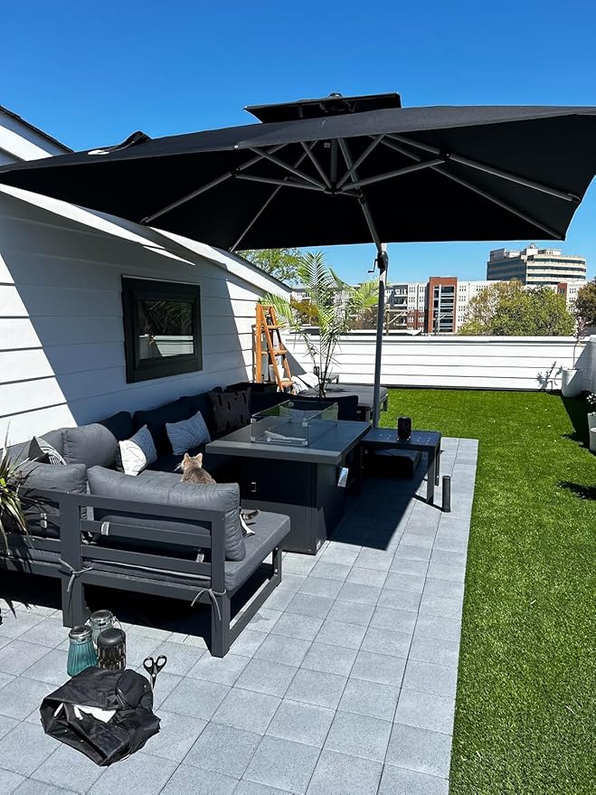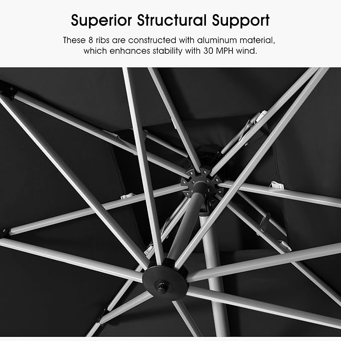 PURPLE LEAF 10 FT Patio Offset Umbrella Outdoor Cantilever Umbrella Hanging Umbrellas, 36 Month Fade Resistance & Water-repellent UV Protection Fabric Canopy with Crank & Water Tank Base (Black)