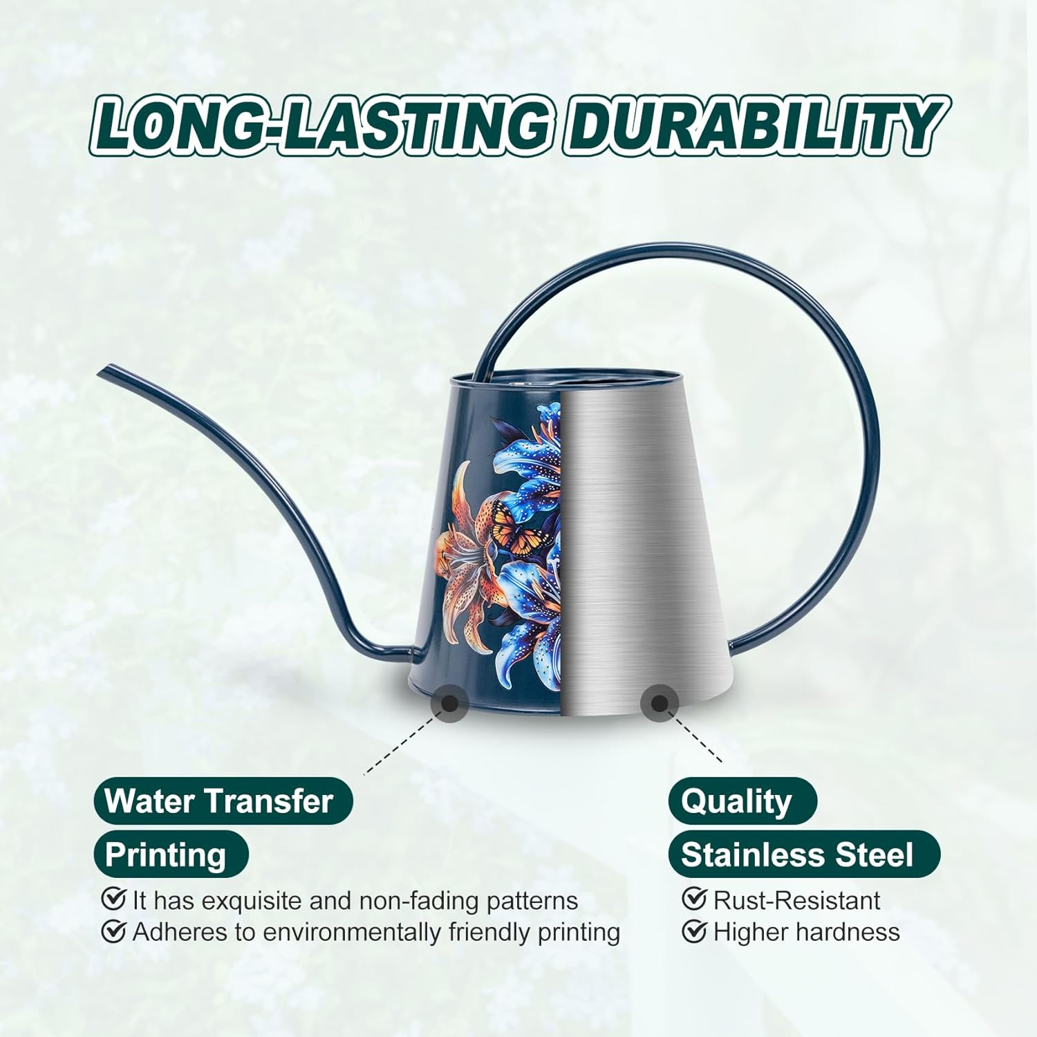 Berry&Bird House Plants Watering Can - Indoor&Outdoor 1/2 Gallon Stainless Steel Water Can with Long Spout Garden Decoration for Flower Bonsai Succulent Gardening Large Watwer Bottle (Lilium Brownii)
