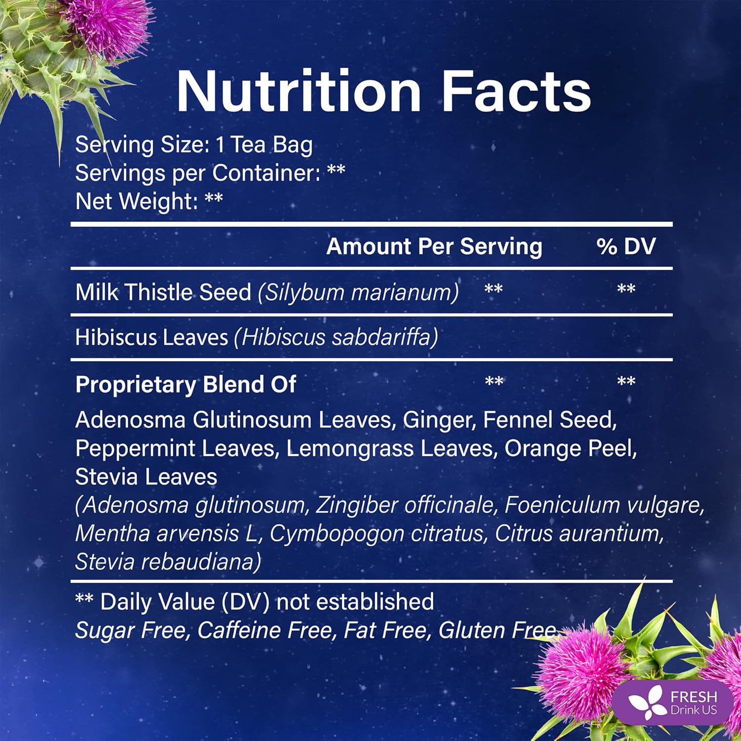 - ☘️ A VIBRANT BOTANICAL BLEND – An inspired mix of Milk Thistle Seed, Hibiscus, Adenosma Glutinosum, Ginger, Fennel, Peppermint, Lemongrass, Orange Peel, and Stevia Leaves—crafted for balance and harmony.