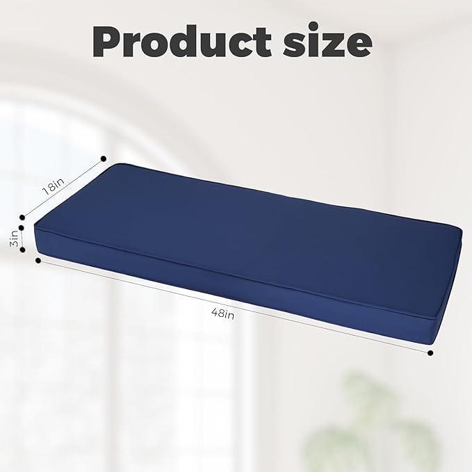 Outdoor Bench Cushion 48x18x3 Inch with Ties, Thick Waterproof Porch Swing Cushions for Patio Furniture Chair Pad, Seat Sofa Garden Replacement Cushion Sponge Filling