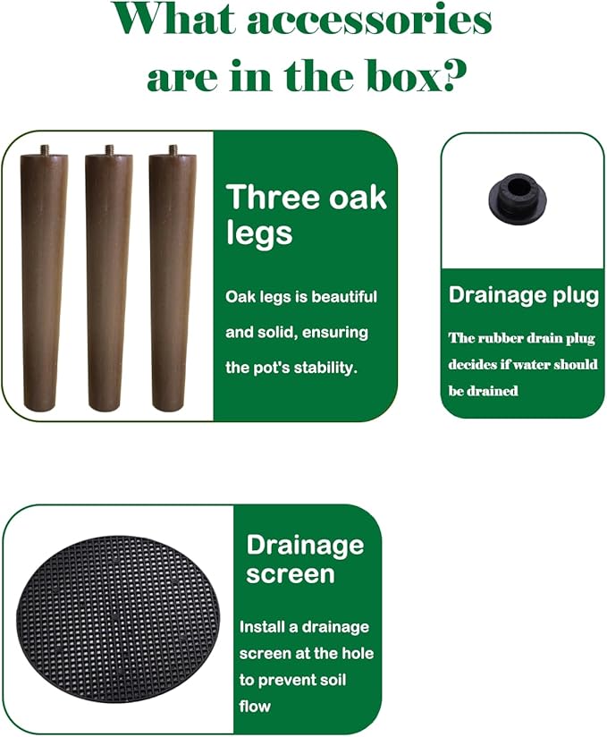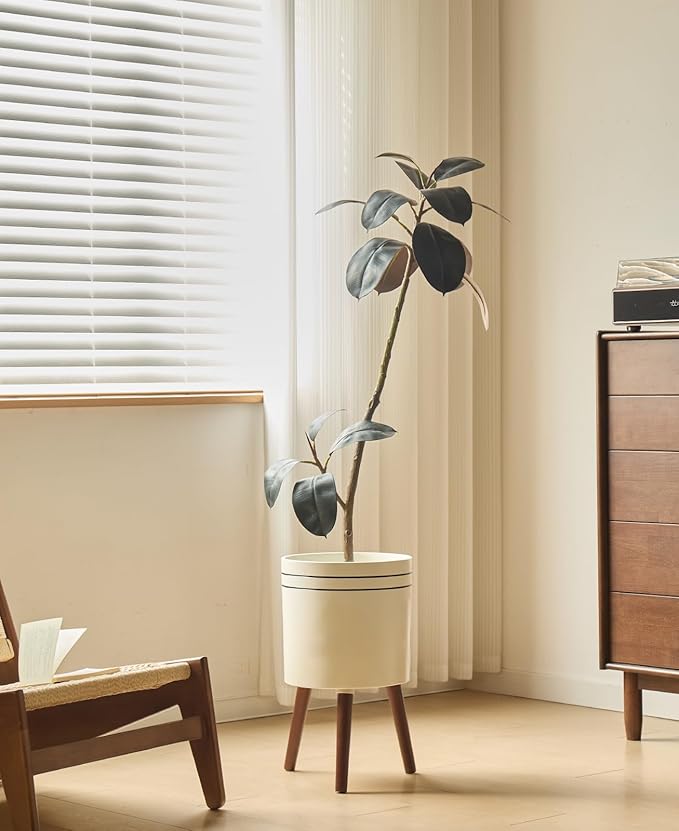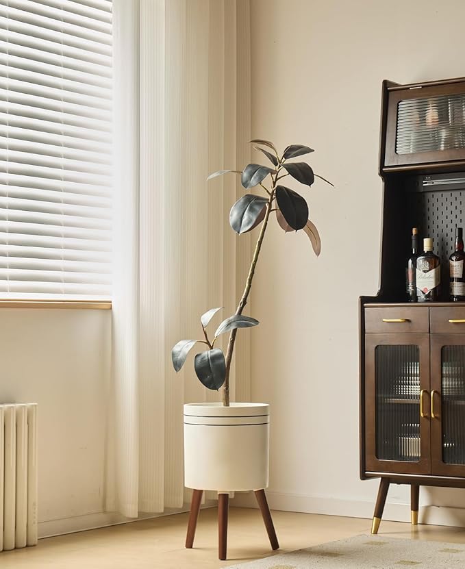 - Stylish Design: This fiberglass planter features a sleek white finish with elegant black stripes, complemented by sturdy oak legs for a modern, minimalist look.