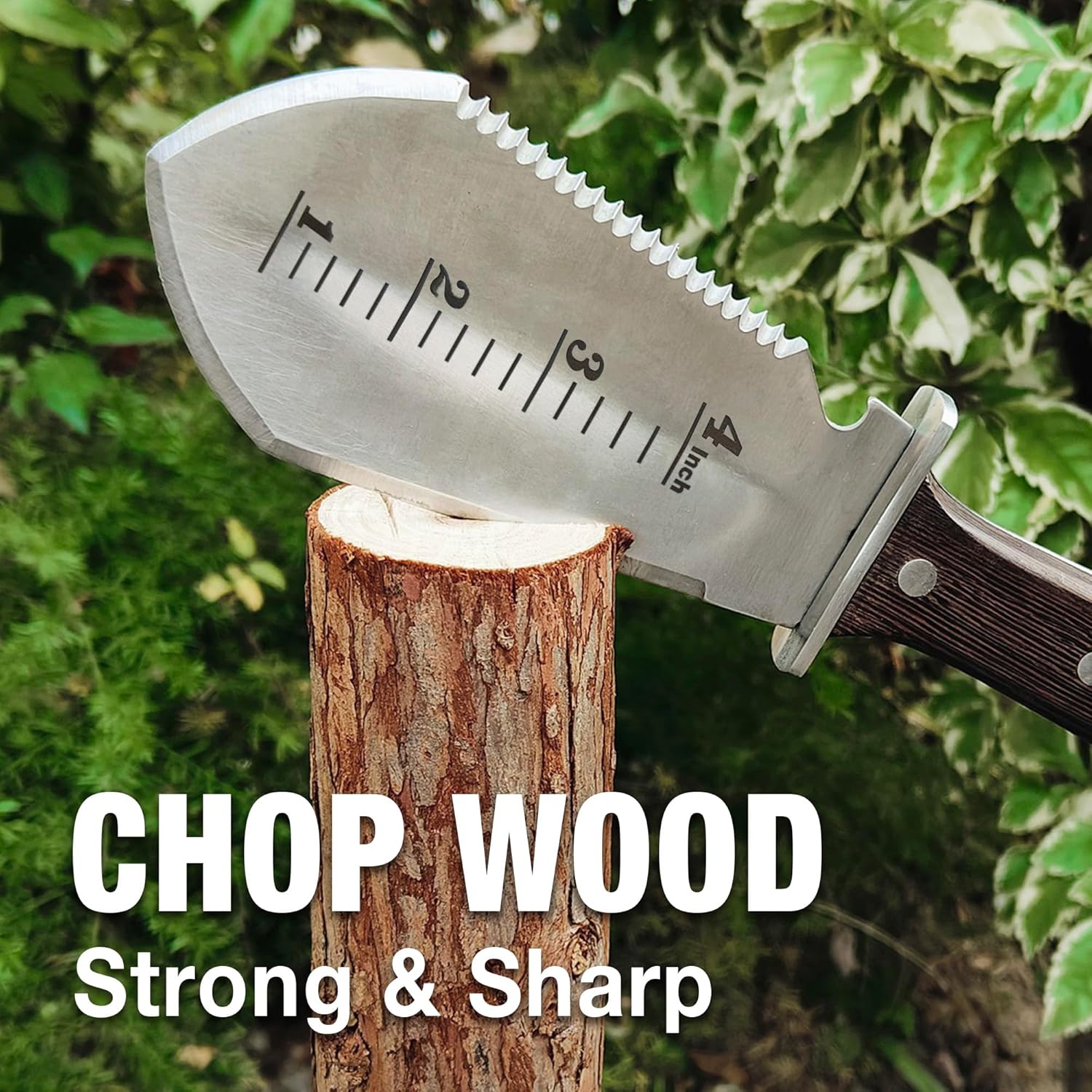 - Efficient & Versatile: Serrated edge handles roots, ropes, and can even saw through wood when needed. Sharp edge chops small branches and shaves off compact soil with precision.