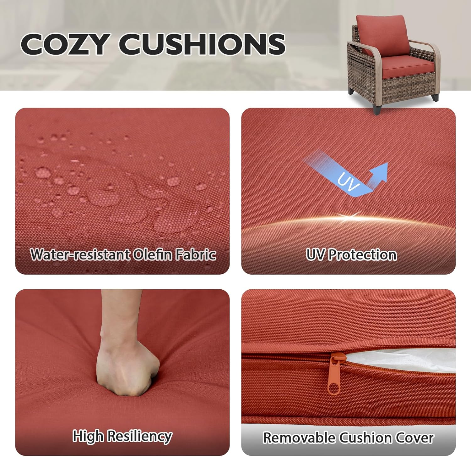 - GATHER, RELAX, ENJOY: This wicker armchair has generously widened seats and plush 5-inch back cushions for ultimate comfort. Designed for outdoor living, it's made with UV protection and weather resistance materials, making this furniture the ideal choice for stylish, worry-free lounging.