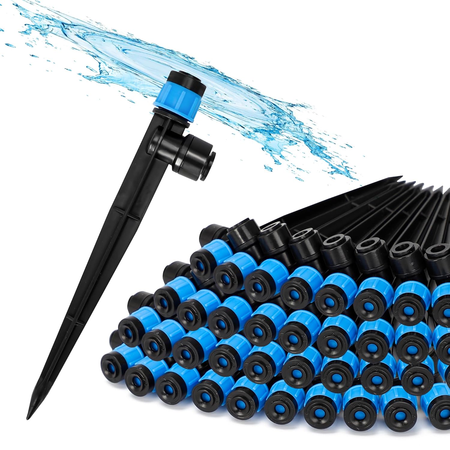 Bonviee 40-Pack Drip Irrigation Emitters, 1/4" Push-to-Connect Irrigation Stakes – Adjustable 360° Water Saving Garden Sprinklers for Potted Plants, Lawn, Vegetable Beds