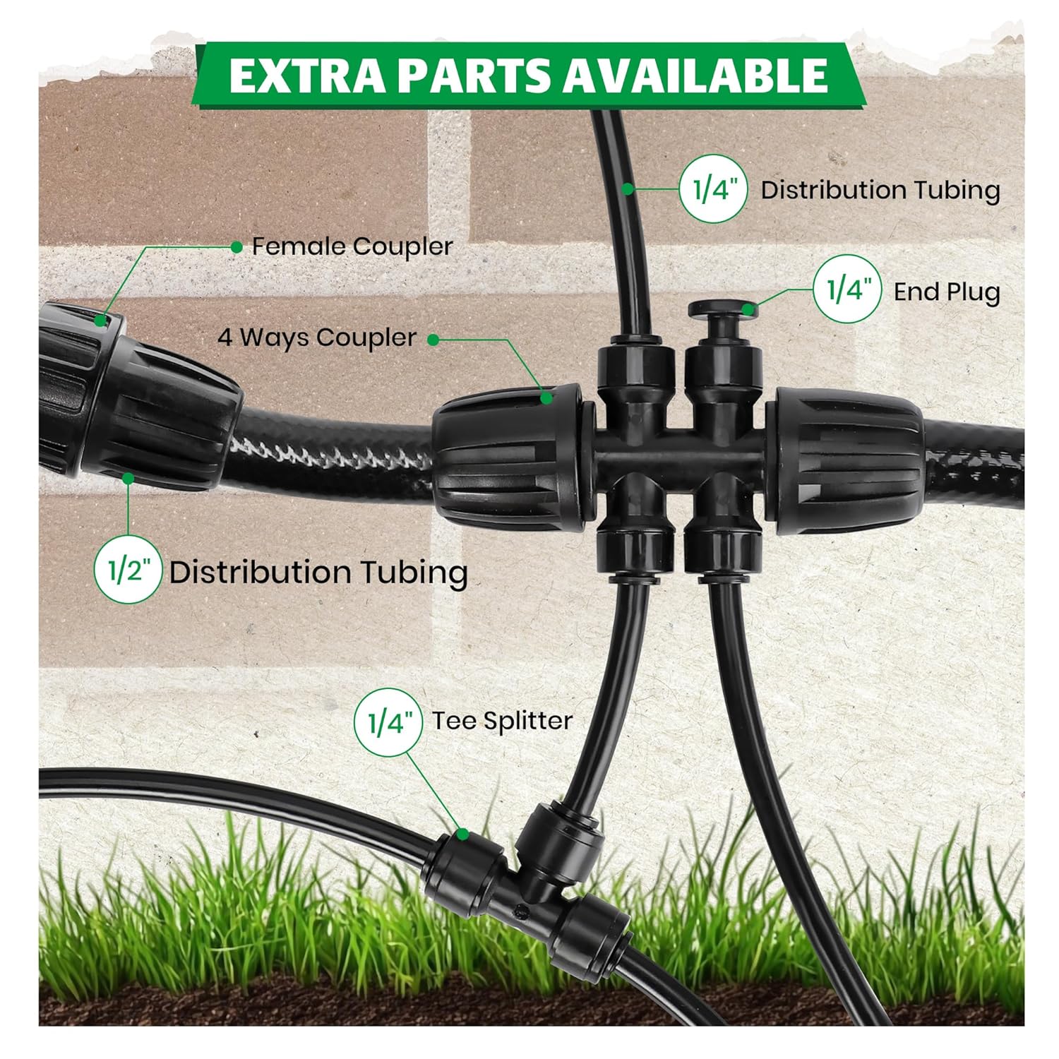 - Effortless Installation – Zero Tools Needed – Push the 1/4” connector into micro tubing, anchor the stake near plant roots, and twist to adjust flow. Spend less time setting up and more time enjoying a healthy garden.