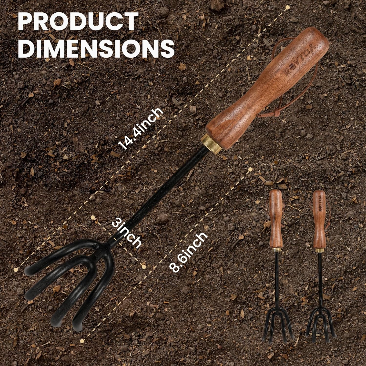 - 【Multi-function】This hand held cultivator is suitable for a wide range of horticultural tasks, including digging, weeding, loosening soil, aerating, transplanting, etc. Gardening gifts for women